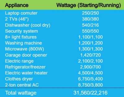Now if you’re looking to keep about everything on in your home, the list of appliances would look something more like this: